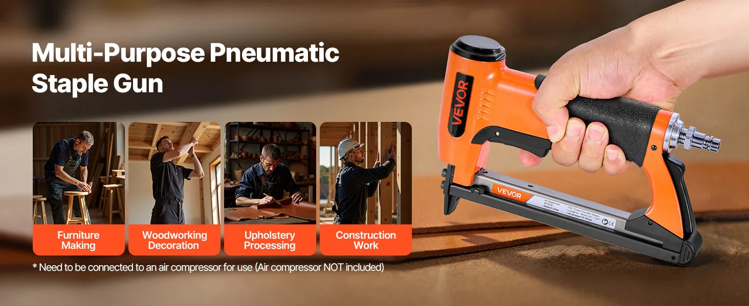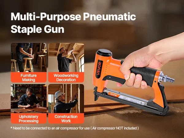 Suitable for upholstering, light-duty furniture assembly, woodworking, cabinet assembly, picture framing, decorative trim installation, crafting sofas, chairs, and more DIY projects. It needs to be connected to an air compressor for use (air compressor not included)