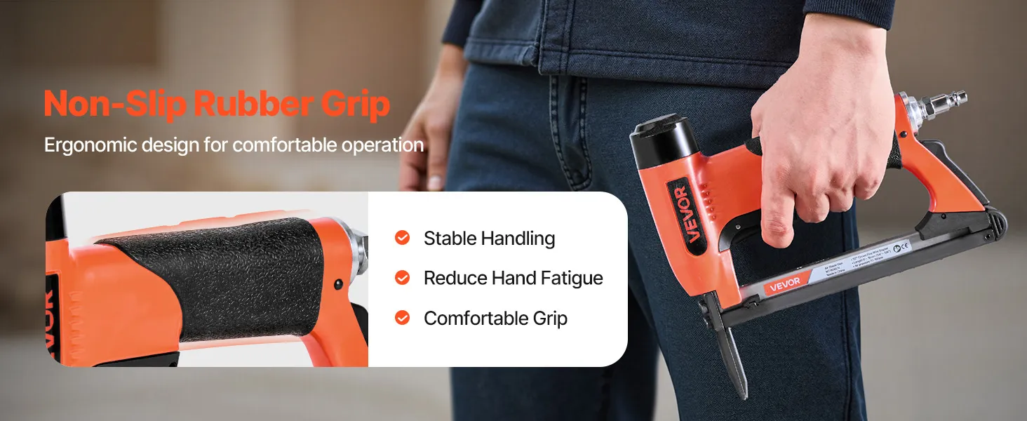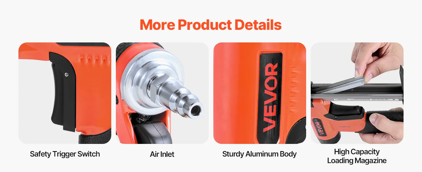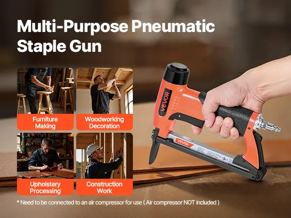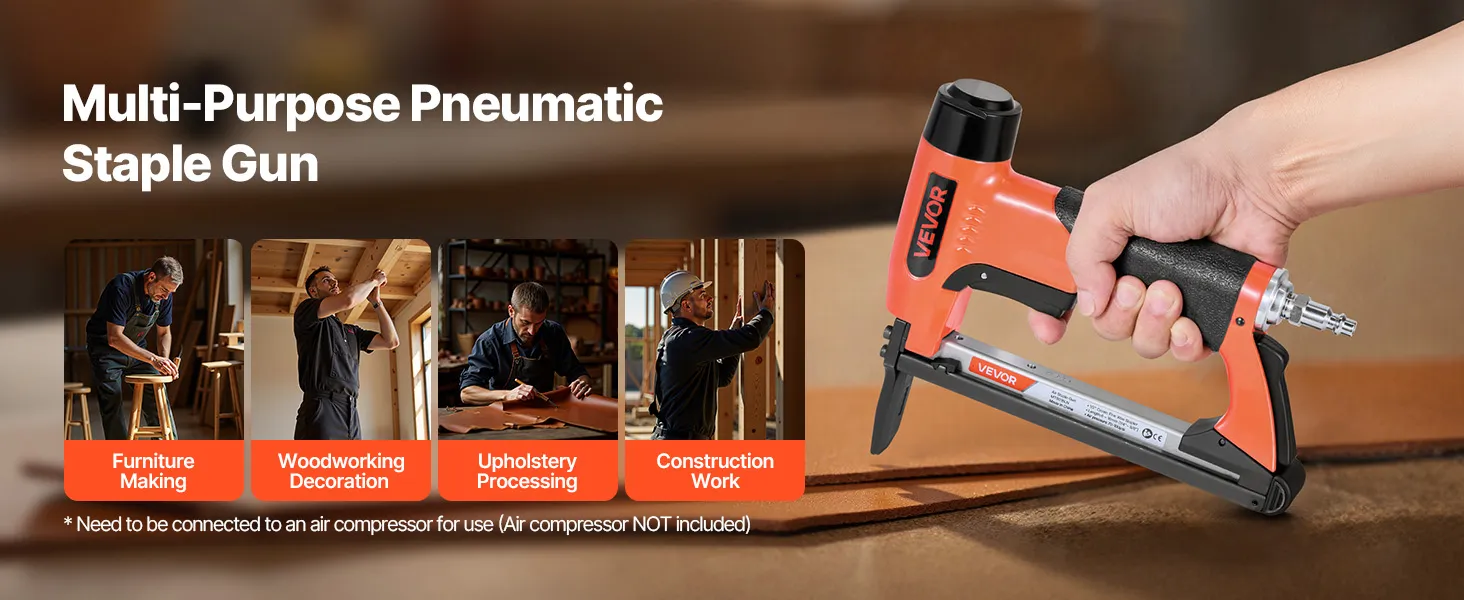Suitable for upholstering, light-duty furniture assembly, woodworking, cabinet assembly, picture framing, decorative trim installation, crafting sofas, chairs, and more DIY projects. It needs to be connected to an air compressor for use (air compressor not included).