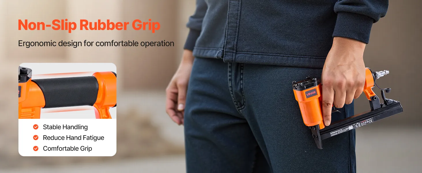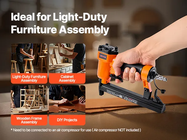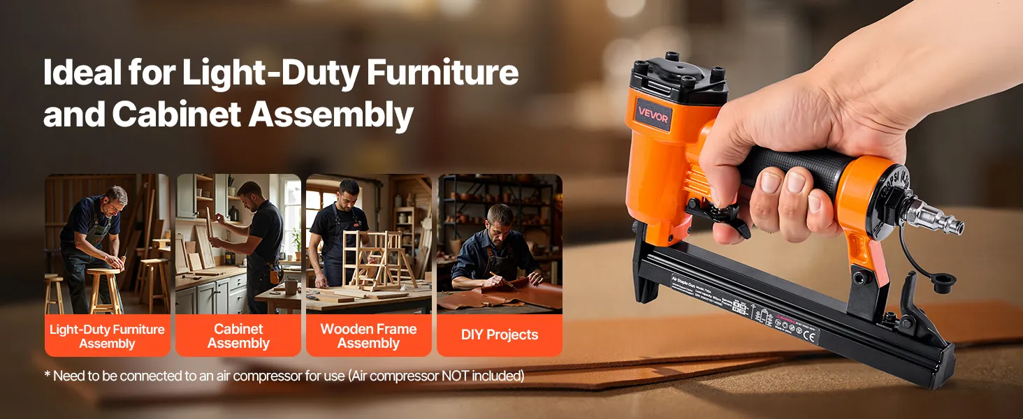 Suitable for upholstering, light-duty furniture assembly, woodworking, cabinet assembly, picture framing, decorative trim installation, crafting sofas, chairs, and more DIY projects. It needs to be connected to an air compressor for use (air compressor not included).
