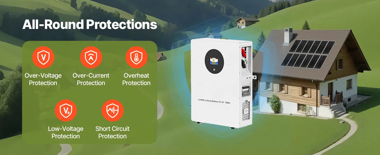 High-quality LiFePO₄ battery supports 4,000–15,000 deep charge cycles. Built-in BMS provides intelligent protection and stable output, delivering lasting power for off-grid applications.