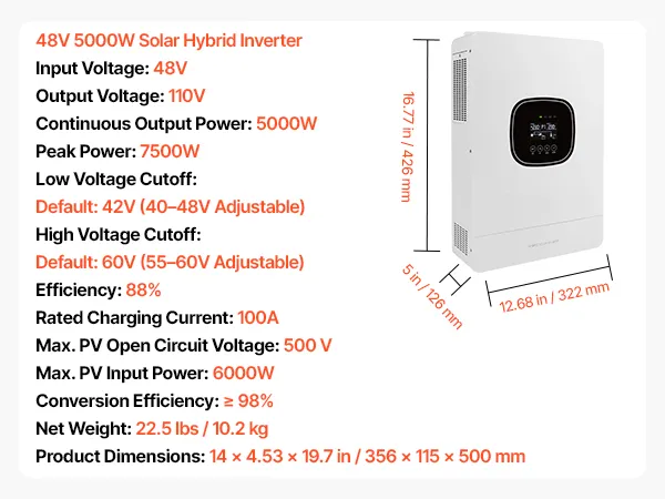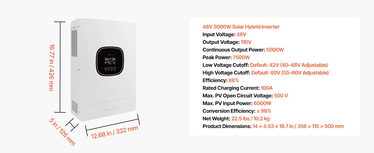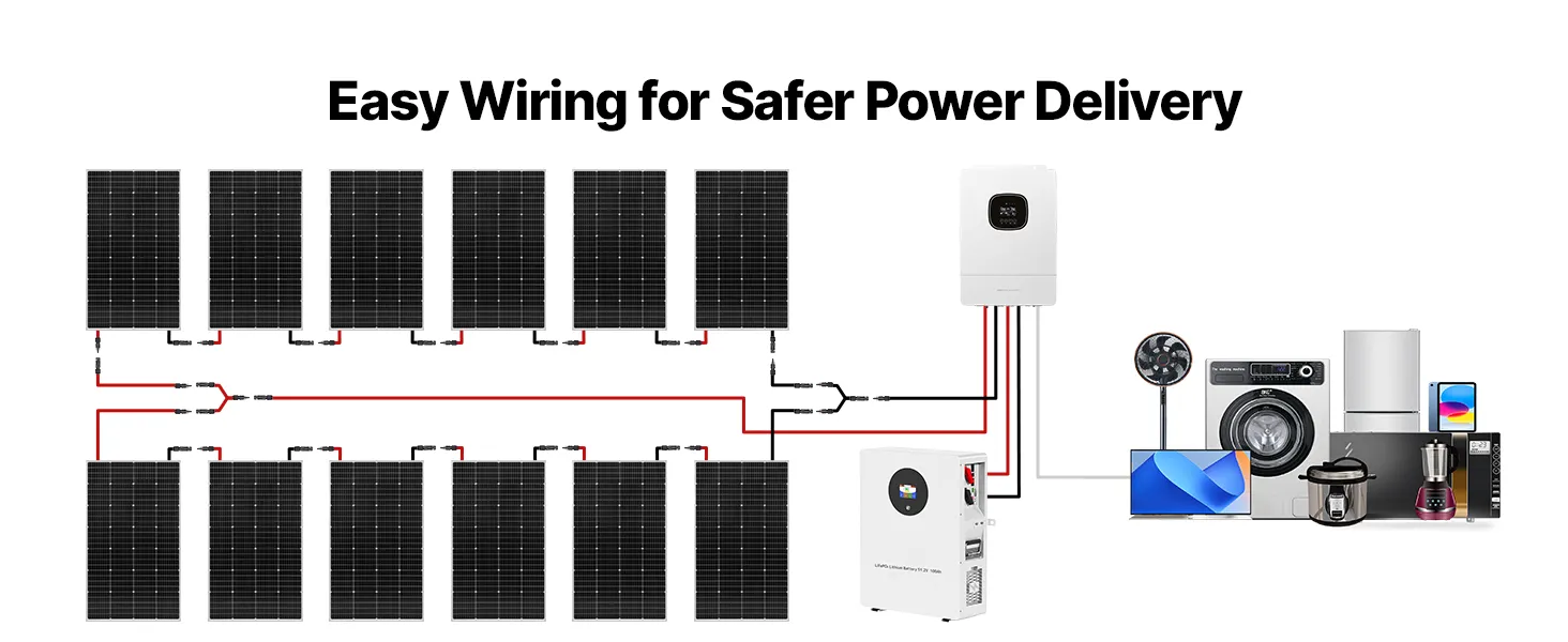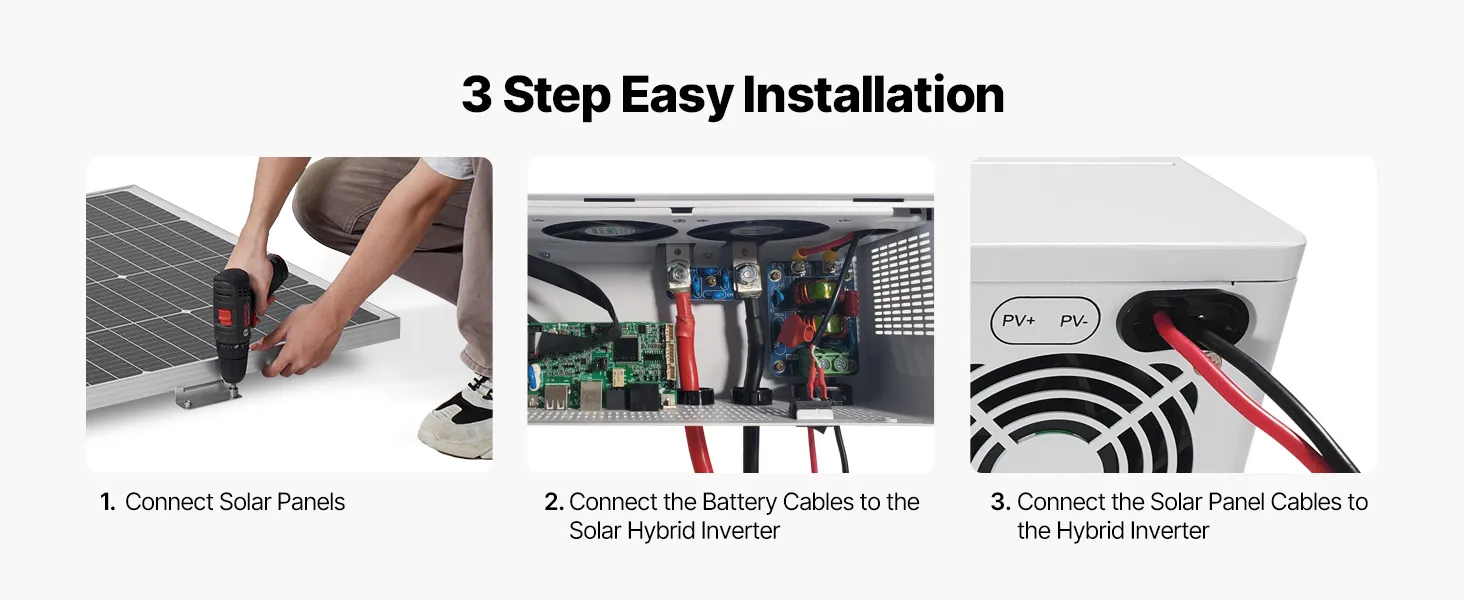 Includes detailed wiring instructions, allowing you to quickly connect the battery, solar panels, and solar hybrid inverter.