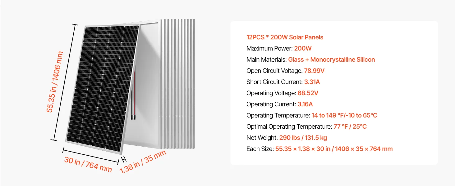 VEVOR 2400W 48V Complete Solar Power Kit, 12PCS 200W Monocrystalline Solar Panels + 51.2V 100Ah LiFePO₄ Battery + 48V 5000W Hybrid Inverter, High Output Off-Grid Solar Kit for Large House Shed Farm