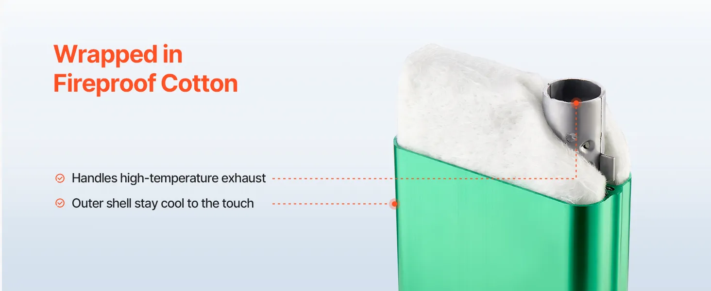 The diesel heater exhaust muffler silencer is designed with a fireproof cotton interior that handles high heat and delivers effective sound control. Ideal for stable exhaust performance across different diesel heaters.