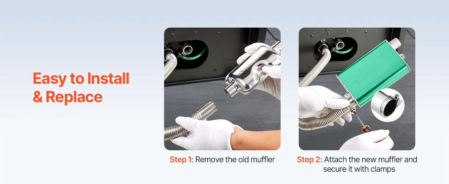 The parking heater muffler fit kit is designed for easy replacement, requiring only two steps. Simply remove the damaged muffler, install the new one, and ensure the clamps are tightened. It supports stable exhaust flow and consistent heater performance.