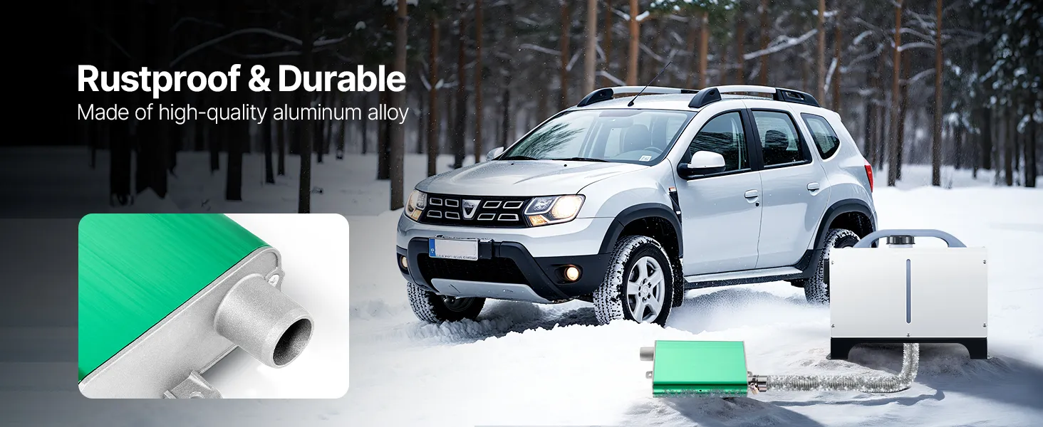 This diesel parking heater silencer generator features robust aluminum alloy construction to withstand harsh environments. It maintains smooth exhaust flow while offering enhanced durability for long-term use.