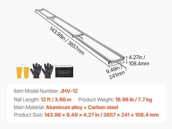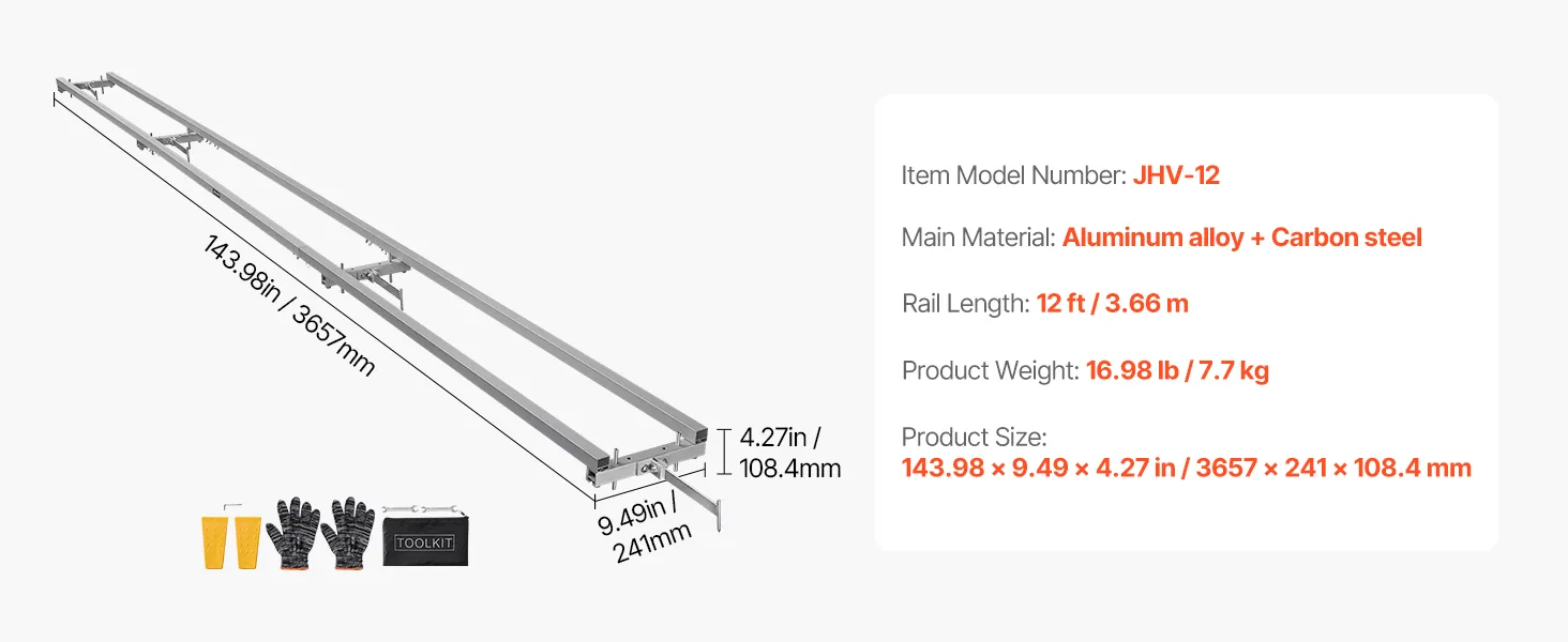 VEVOR Rail Mill Guide System, 3.66 m 4 Crossbar Chainsaw Mill Kits, Aluminum Saw Milling Rails System Works with Chainsaw, 2 Wedges, Adjustable Rail Milling Guide Kit for Builders Woodworkers