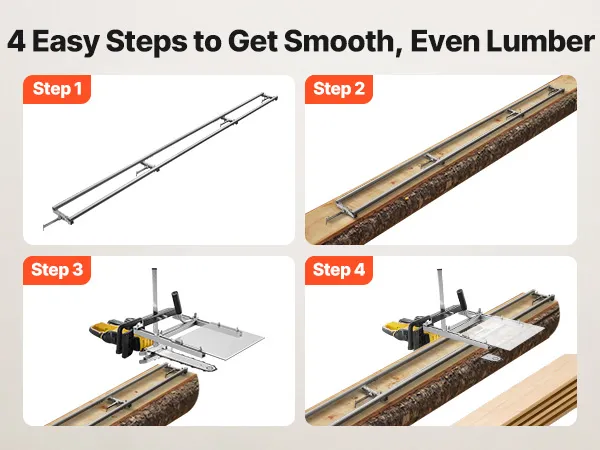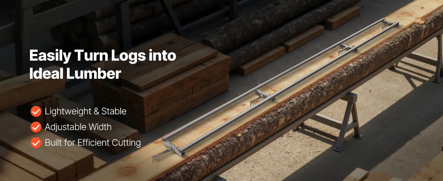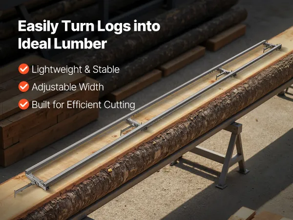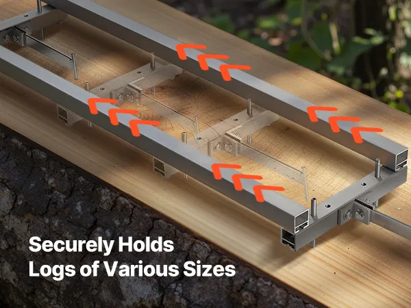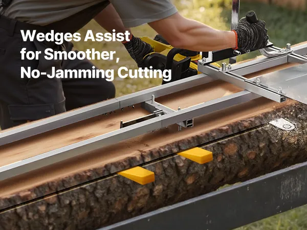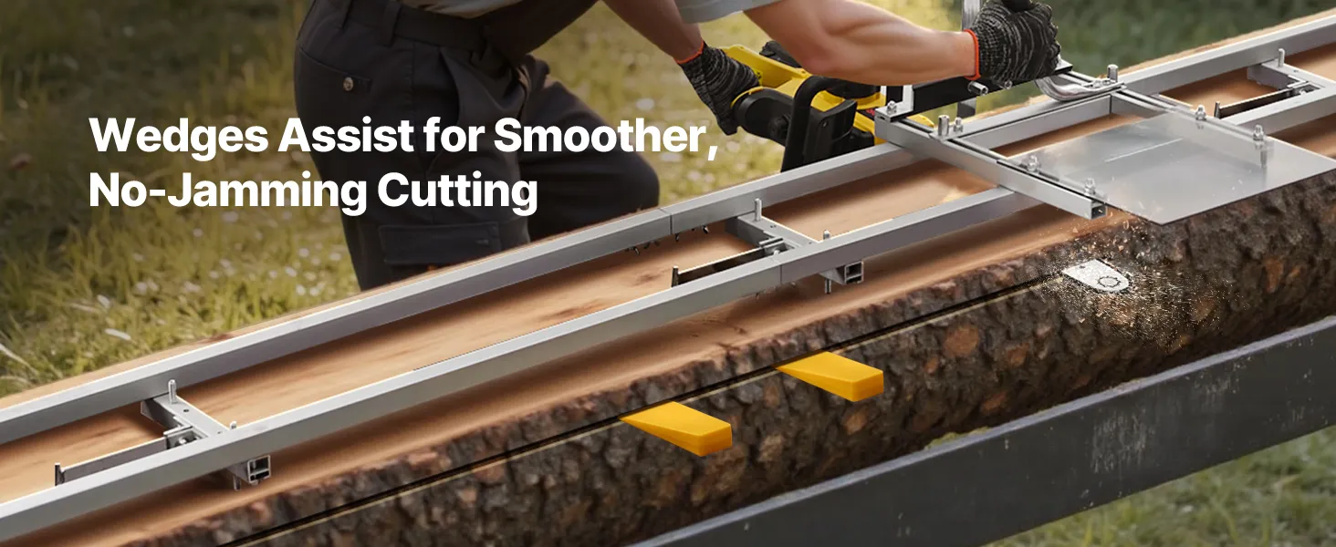 The saw mill rail includes two wedges to prevent blade pinching, ensuring smooth and steady operation.