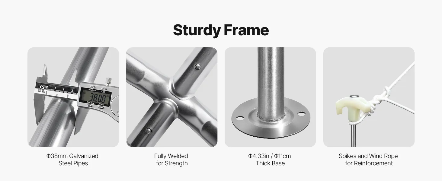 • Strong and Durable Materials: Made with galvanized steel pipes, the frame resists rust. The car canopy comes with alloy steel frame that is stronger and more durable than regular steel, able to withstand higher wind pressure and heavier weight, ensuring long-lasting use. Equipped with wind ropes and ground stakes for added stability in windy conditions.