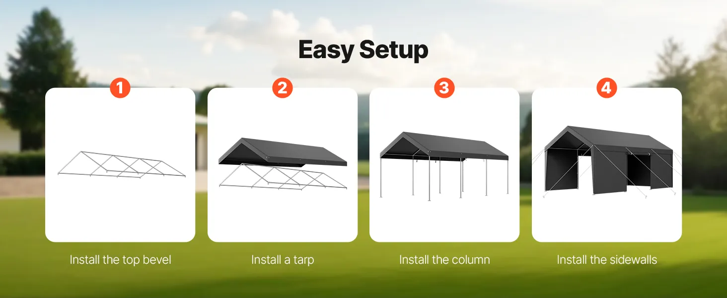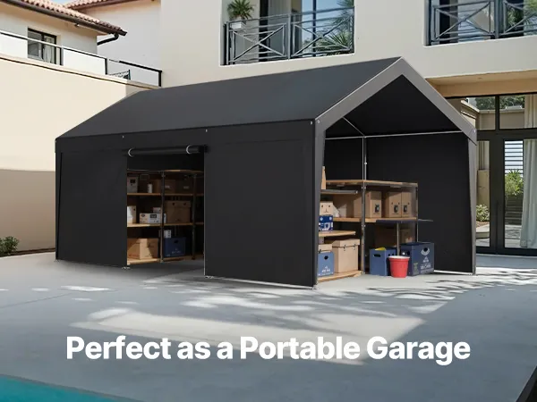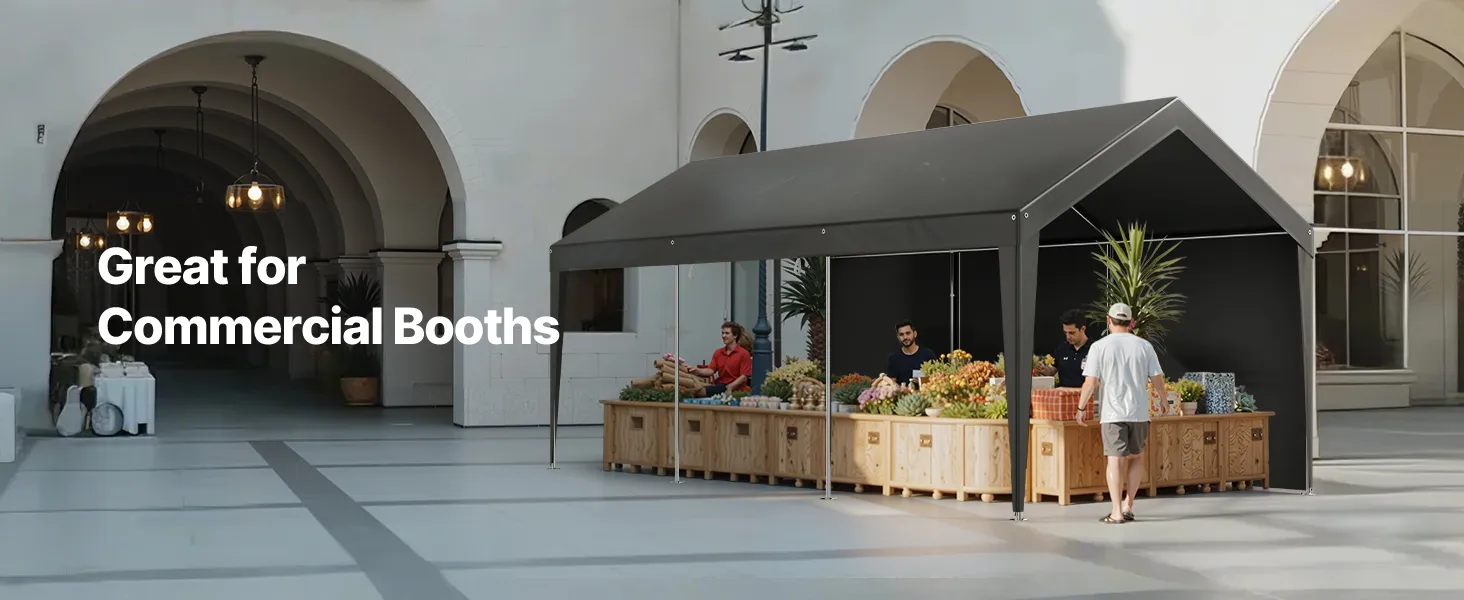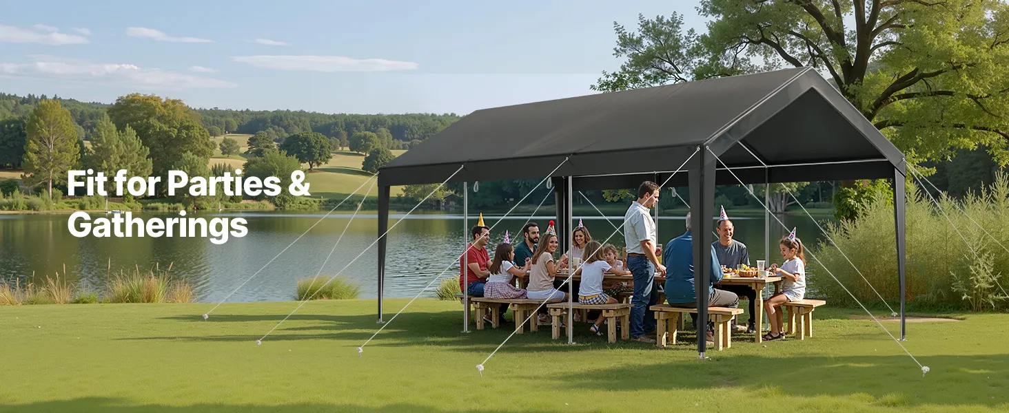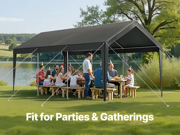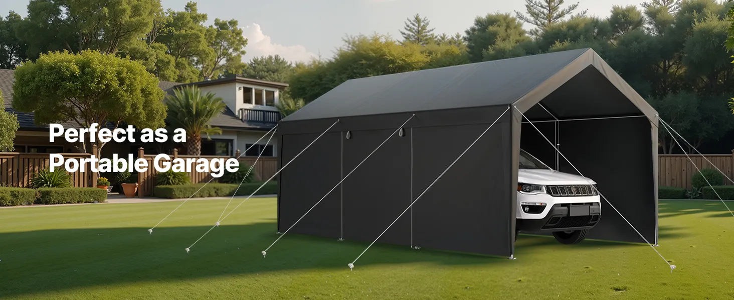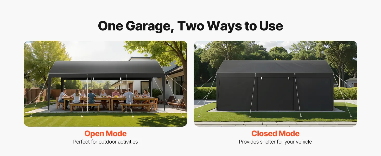 • Removable Sidewalls and Zipper Door: The heavy duty car port features removable sidewalls and a zipper door for ventilation. You can roll up or remove the door and sidewalls, leaving just the canopy for outdoor activities.