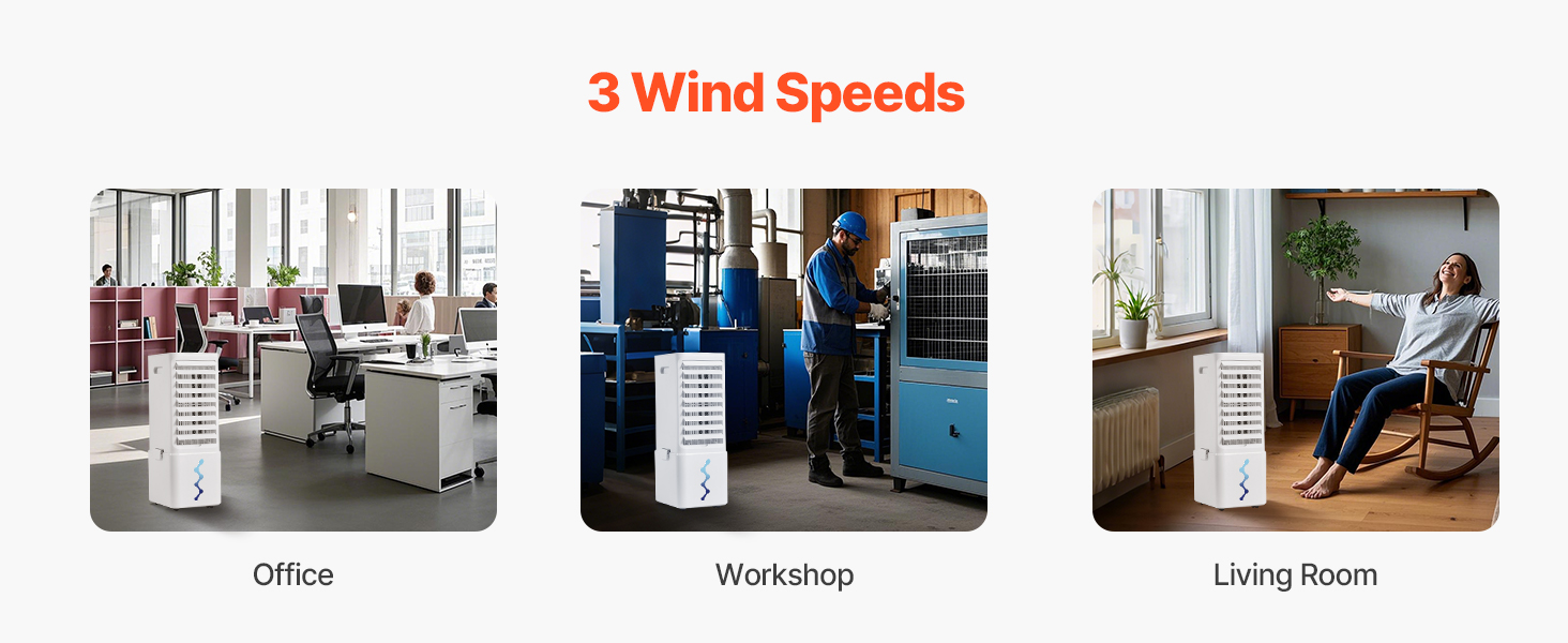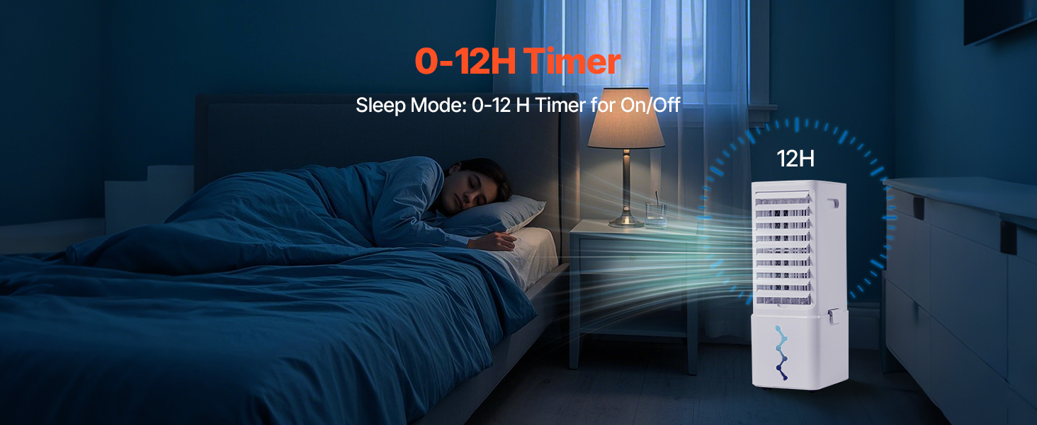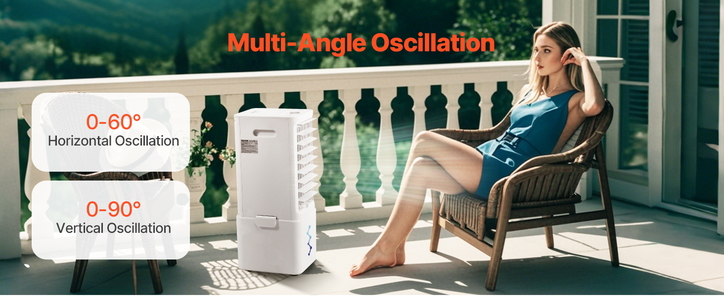 Beat the heat with our swamp cooler. It effectively uses water to cool the air without installation and provides a cooler experience than a regular fan. With features like multi-angle airflow, 3 speeds, and a 0-12H timer, this evaporative air cooler keeps you comfortable all day.