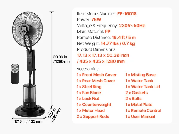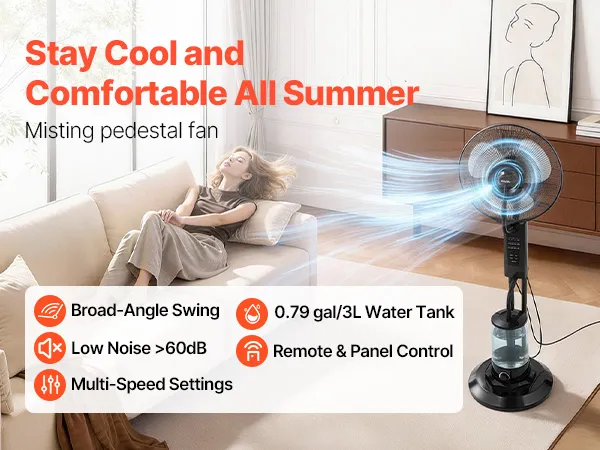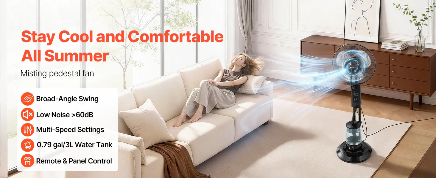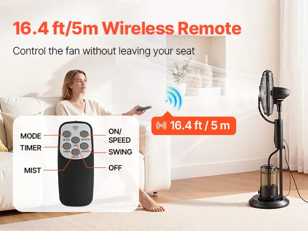 • Dual Control Access: Our water spray fan includes remote and panel control to match different preferences. From speed changes to mode shifts and timer setup, each function can be handled easily, offering a smooth experience in a wide range of settings