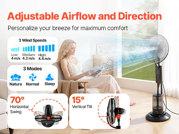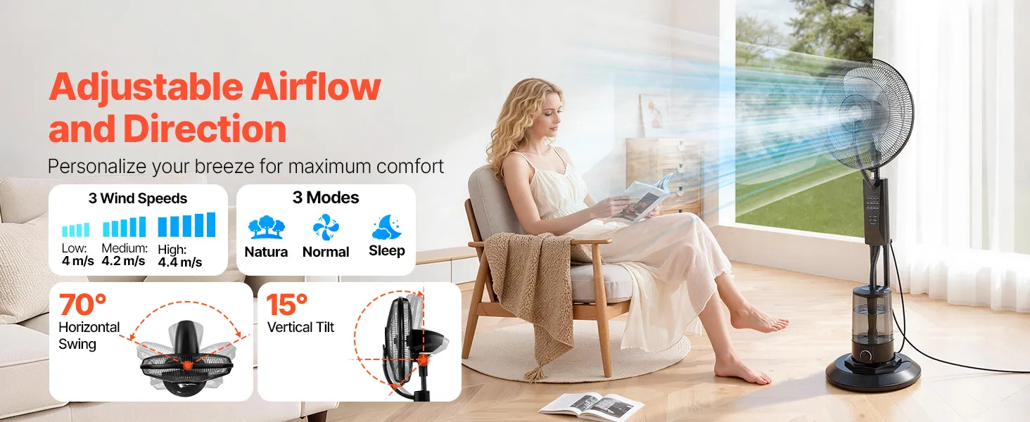 • Flexible Air Settings: With three speeds and three modes, this VEVOR portable mister adapts to various moments, whether you prefer natural airflow, steady cooling, or quiet nighttime comfort. You can fine-tune each level for different scenes, creating airflow and mist effects that suit your routine