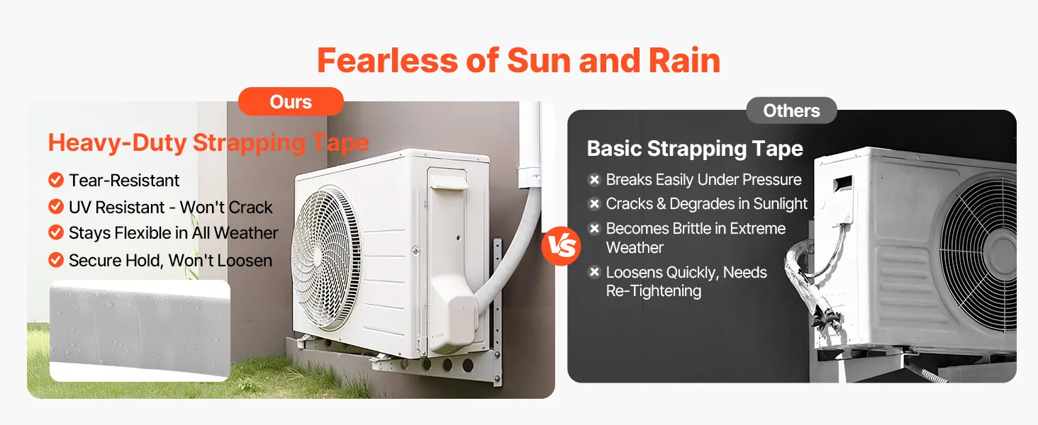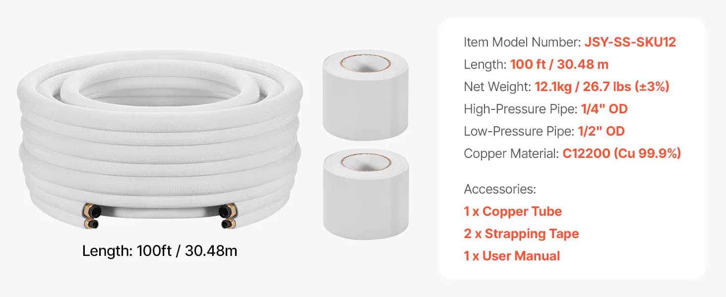 The kit is compatible with mini-split AC units. High-purity tubing resists kinking and leaks during bends, ideal for complex setups like garages or workshops. Comes with strapping tape—ready to use out of the box. Simple installation requires only basic tools to connect indoor and outdoor units.