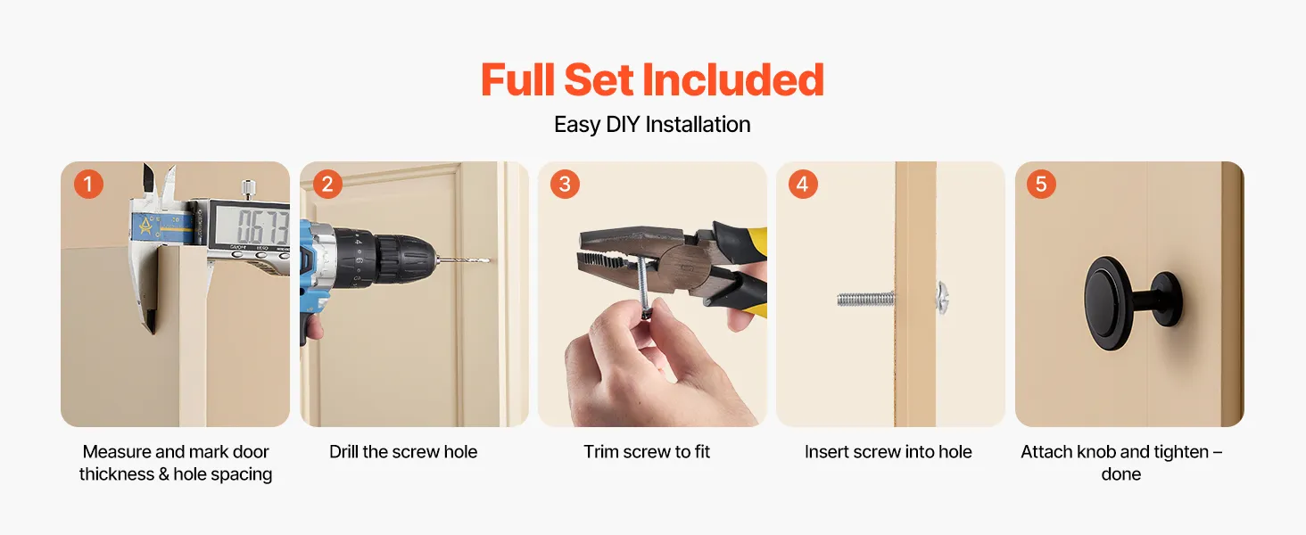 Our dresser knobs include two screw sizes to match different cabinet thicknesses. Screws can be trimmed as needed, and installation takes just a few easy steps with no special tools required.