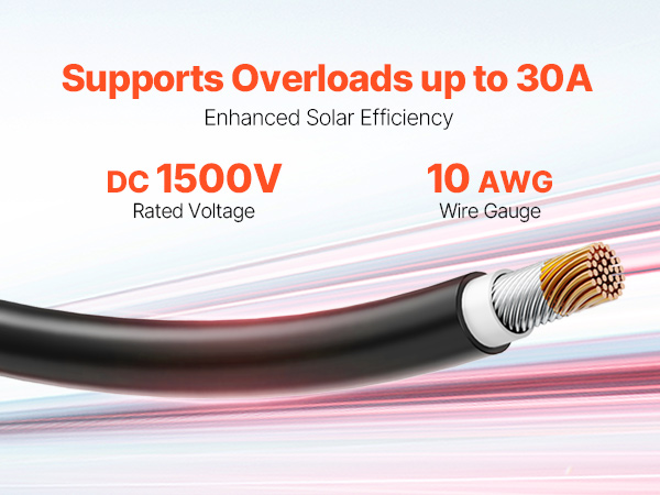 A: Спочатку переконайтеся, що номінальні струми та напруги кабелю відповідають характеристикам сонячної системи. Цей кабель має переріз 10 AWG.