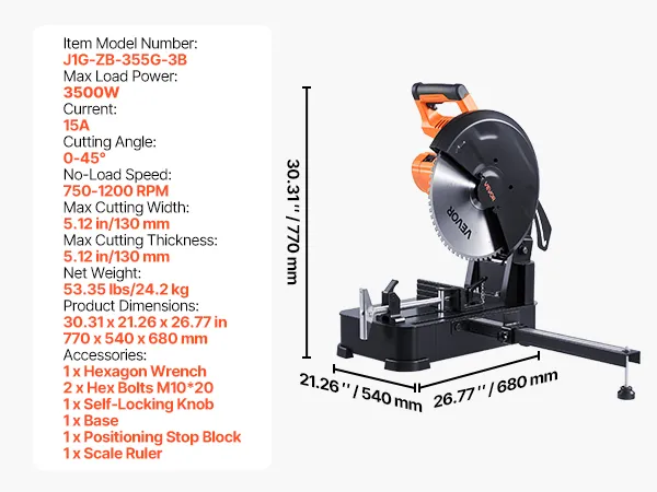Equipped with a powerful motor and premium blade, this chop saw delivers fast, precise 0–45° cuts, boosting efficiency and minimizing downtime.