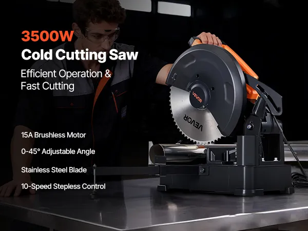 VEVOR Chop Saw, 355 mm Stainless Steel Cold Cut Blade, 3500 W Powerful Brushless Motor, 750-1200 r/min Adjustable Speed, Metal Cutting Chop Saw for Metal Square and Flat Tubes, I-Shaped Steels