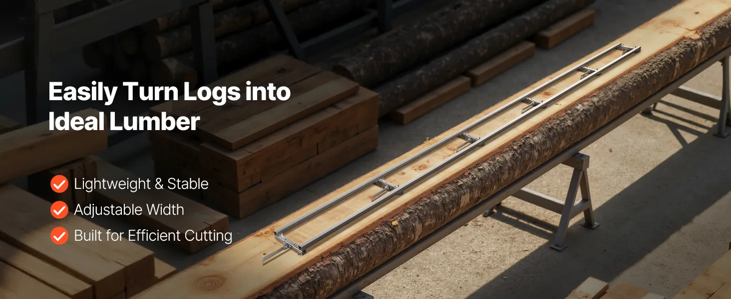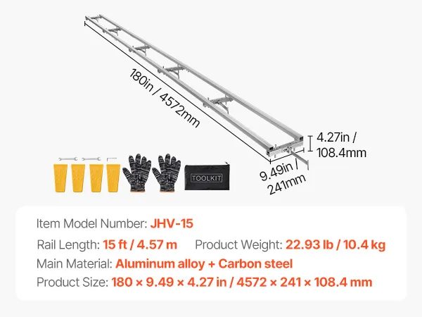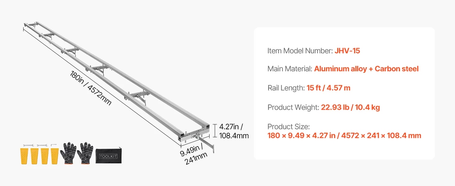 VEVOR Rail Mill Guide System, 4.57 m 6 Crossbar Chainsaw Mill Kits, Aluminum Saw Milling Rails System Works with Chainsaw, 4 Wedges, Adjustable Rail Milling Guide Kit for Builders Woodworkers