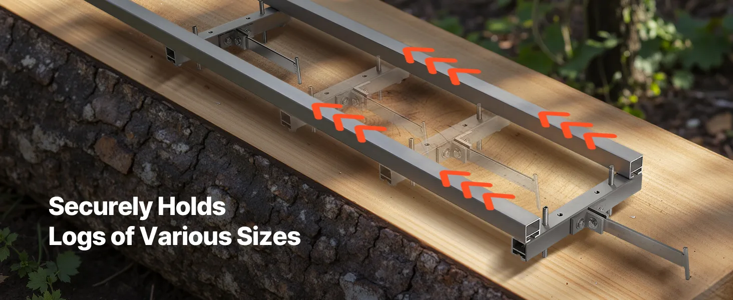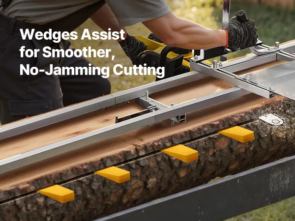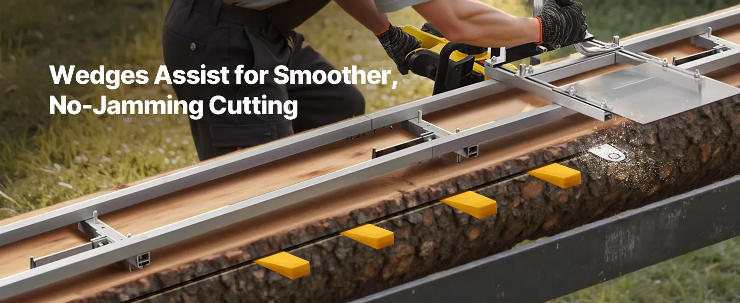 The saw mill rail includes four wedges to prevent blade pinching, ensuring smooth and steady operation.