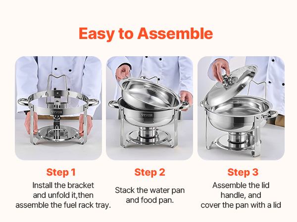 A2: Yes, the chafing dish is made from durable stainless steel, which makes cleaning a breeze. The food pan and water pan are both removable for easy washing, and the frame can be wiped clean after each use.