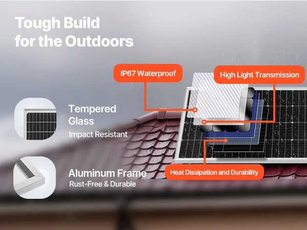 High-efficiency monocrystalline solar cells ensure superior energy conversion. IP67 waterproof rating makes them reliable for long-term outdoor use.