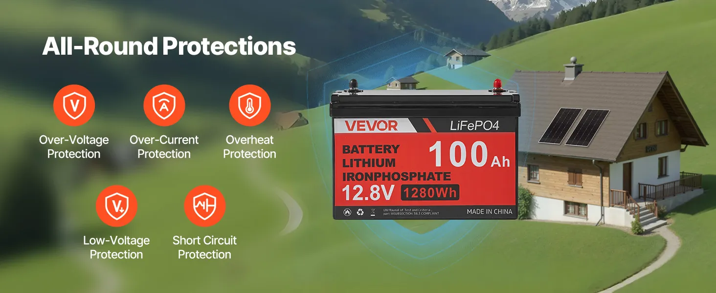 High-quality LiFePO₄ battery supports 4,000–15,000 deep charge cycles. Built-in BMS provides intelligent protection and stable output, delivering lasting power for off-grid applications.