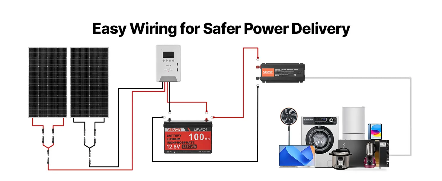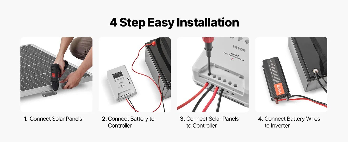 Includes detailed wiring instructions, allowing you to quickly connect the battery, solar panels, controller, and inverter.