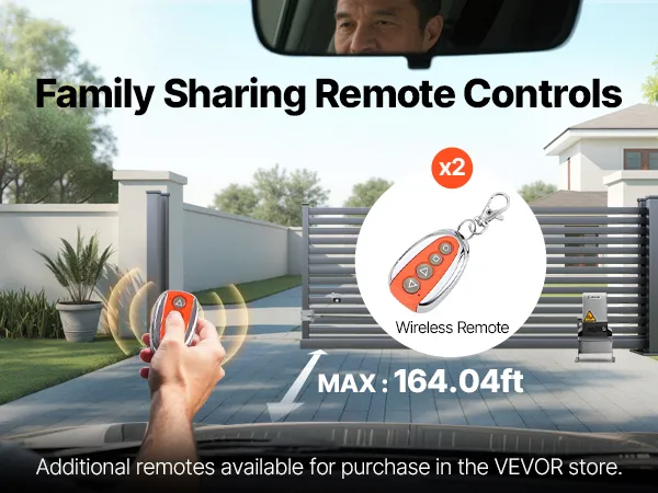• Remote Control Access: The sliding gate opener includes two remotes with a 50m range, and supports up to 40 remotes for larger households, communities, businesses, or schools.