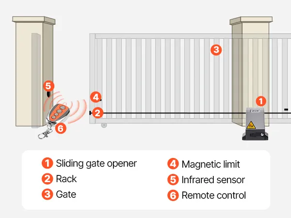 • Smart Safety Features: The automatic gate opener is equipped with infrared sensors. When the infrared sensor detects a person or vehicle, the gate automatically reverses to prevent accidental collisions, and ensures security of your kids and pet.