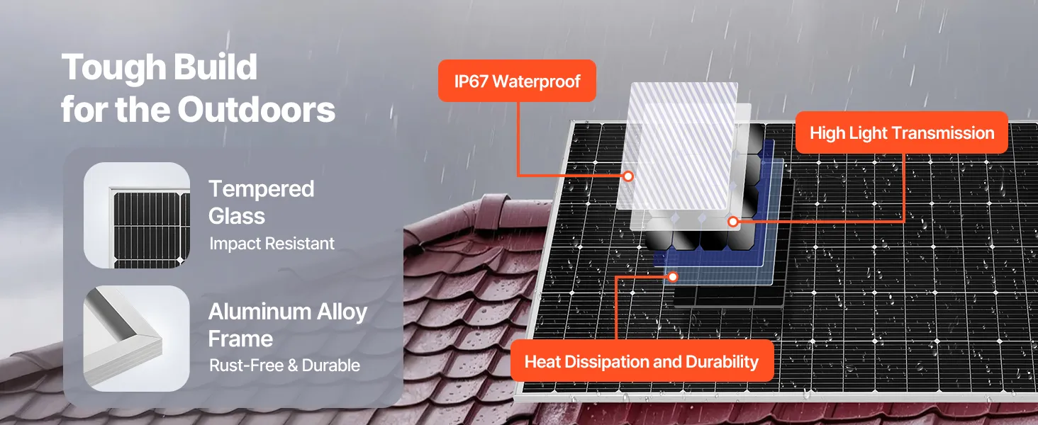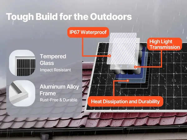High-efficiency monocrystalline solar cells ensure superior energy conversion. IP67 waterproof rating makes them reliable for long-term outdoor use.