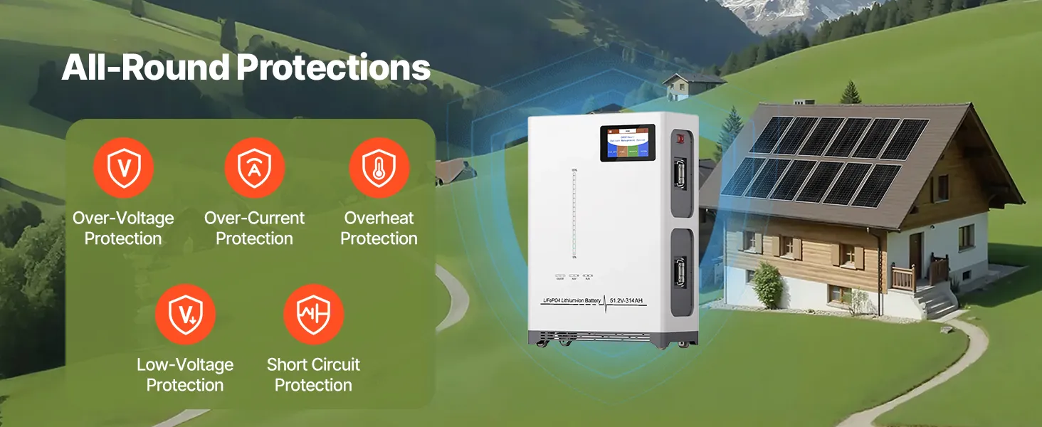 High-quality LiFePO₄ battery supports 4,000–15,000 deep charge cycles. Built-in BMS provides intelligent protection and stable output, delivering lasting power for off-grid applications.