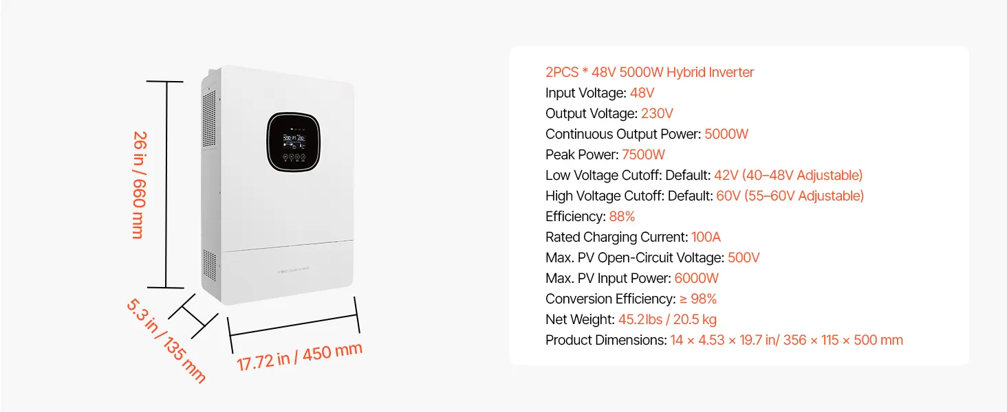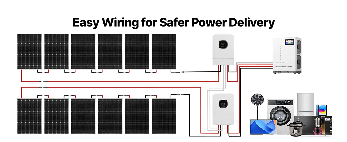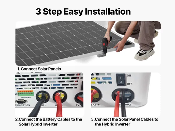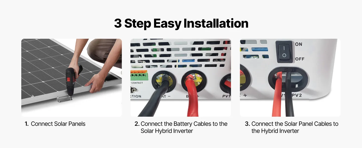 Includes detailed wiring instructions, allowing you to quickly connect the battery, solar panels, and solar hybrid inverter.