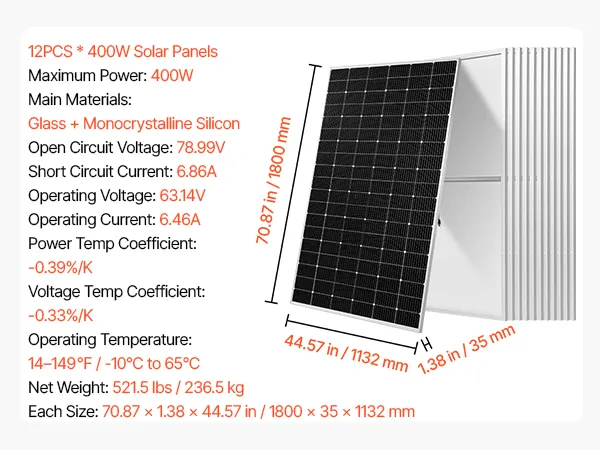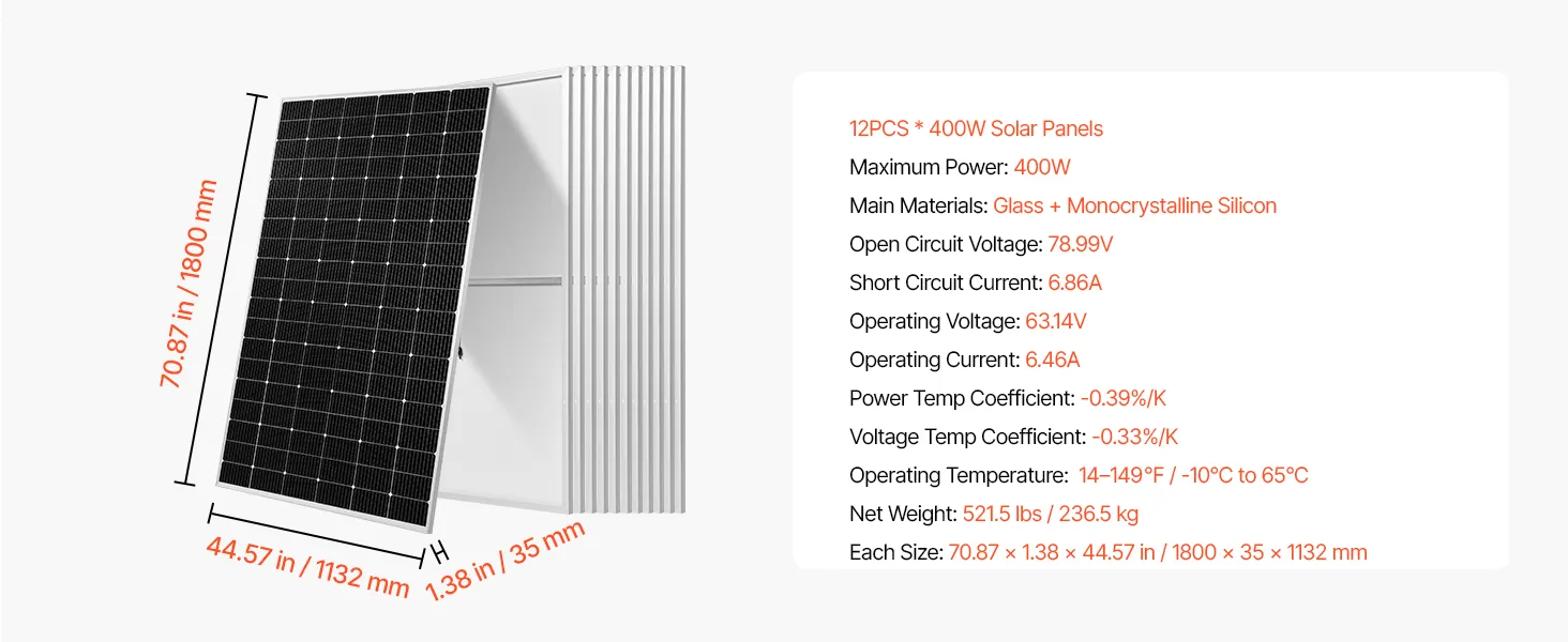 VEVOR 4800W 48V Complete Solar Power Kit, 12*400W Monocrystalline Solar Panels + 51.2V 300Ah LiFePO₄ Battery + 2PCS 5000W Hybrid Inverter, High Output Off-Grid Solar Kit for Large House Shed Farm