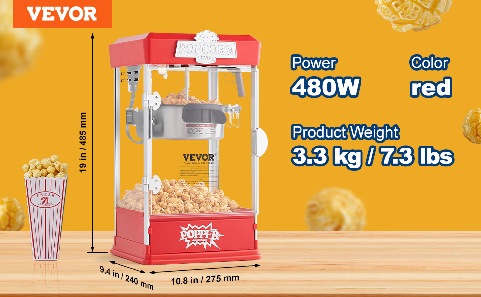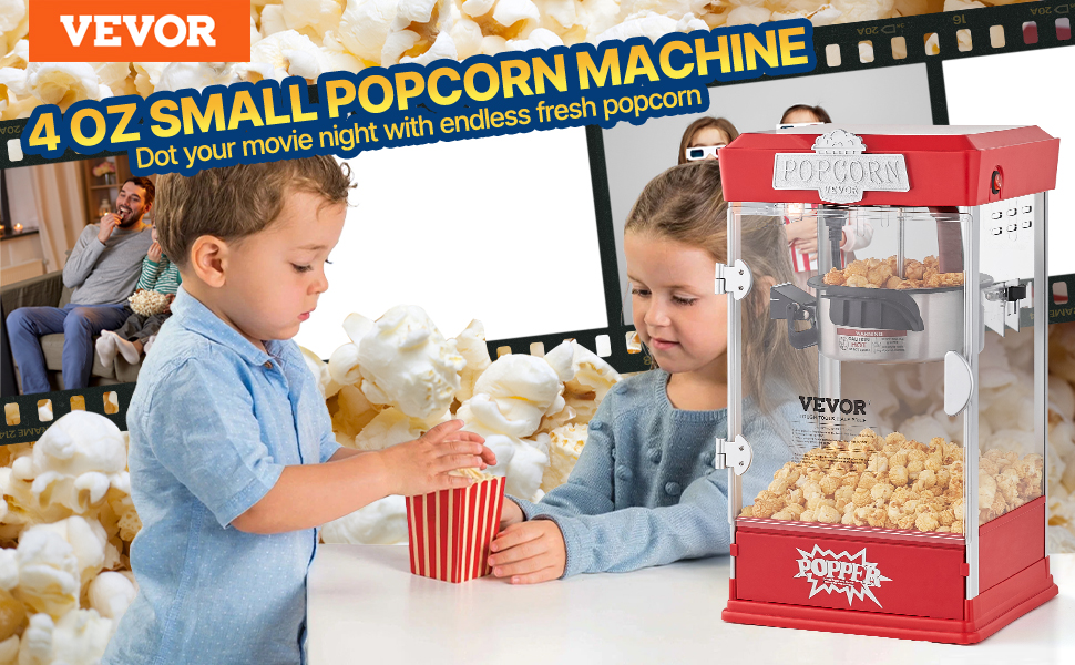 VEVOR Popcorn Popper Machine Tabletop Popcorn Maker 480W 4 Oz Red