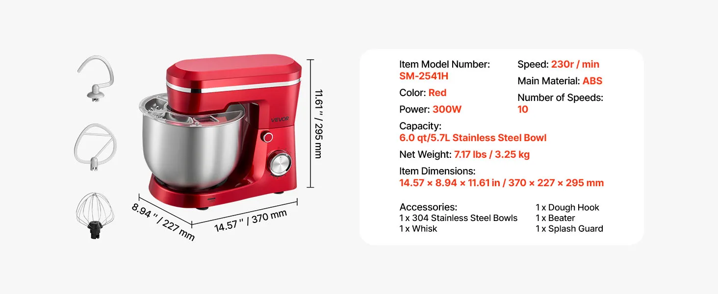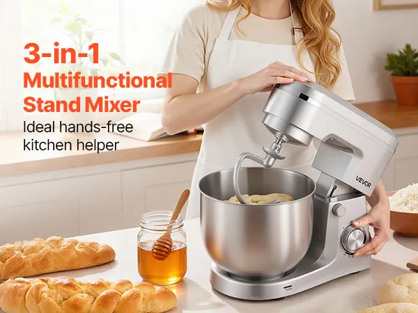 • Complete Mixing Solution: Ready to tackle anything in the kitchen! Our stand mixer features 3 professional mixing attachments: a dough hook for kneading heavy dough, a beater for stirring mashed potatoes or salad, and a whisk for light mixtures like whipped cream or egg whites