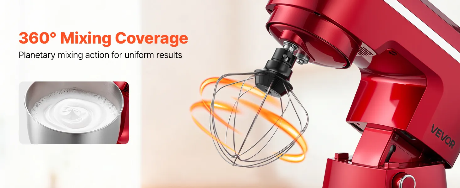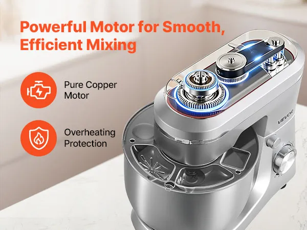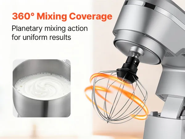 • 10-Speed Control: Our electric stand mixer has a 1500W powerful motor for quick, even mixing. 10 adjustable speeds let you achieve ideal results: 1–6 for dough, 1–7 for fillings, 8–10 for whipping cream. Please stop it before changing speeds