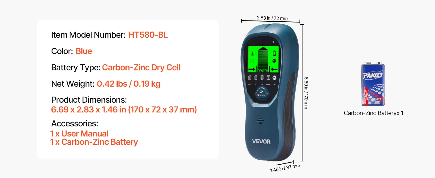 Designed for home use, this wall detector scanner helps you precisely locate mounting points for TV brackets, wall cabinets, picture frames, and even garage shelves. It is ideal for DIY enthusiasts, homeowners, and professional installers. A must-have in every toolbox.