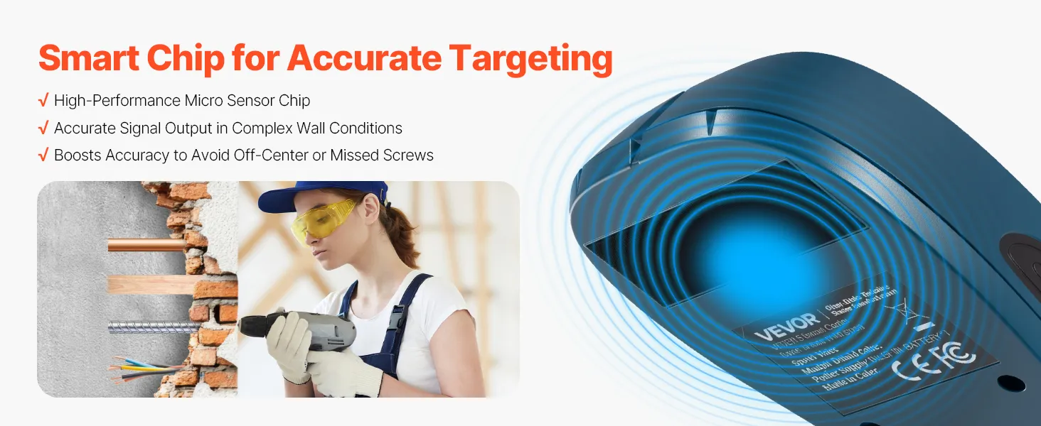 Equipped with a high-performance micro-sensor chip, the wall stud finder delivers exceptional data recognition to precisely locate the center and edges. This ensures accurate installation without damaging walls, even in complex material environments. Stable and precise signals every time.