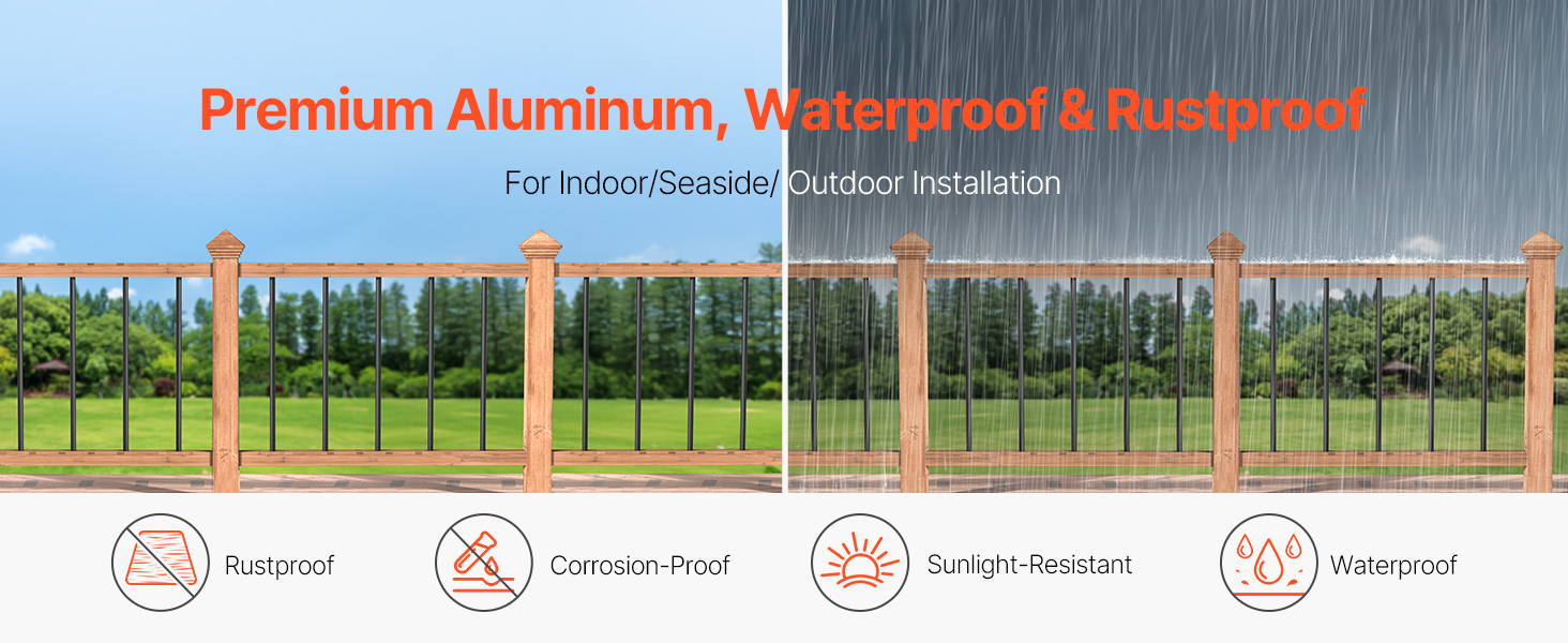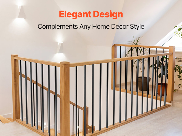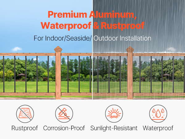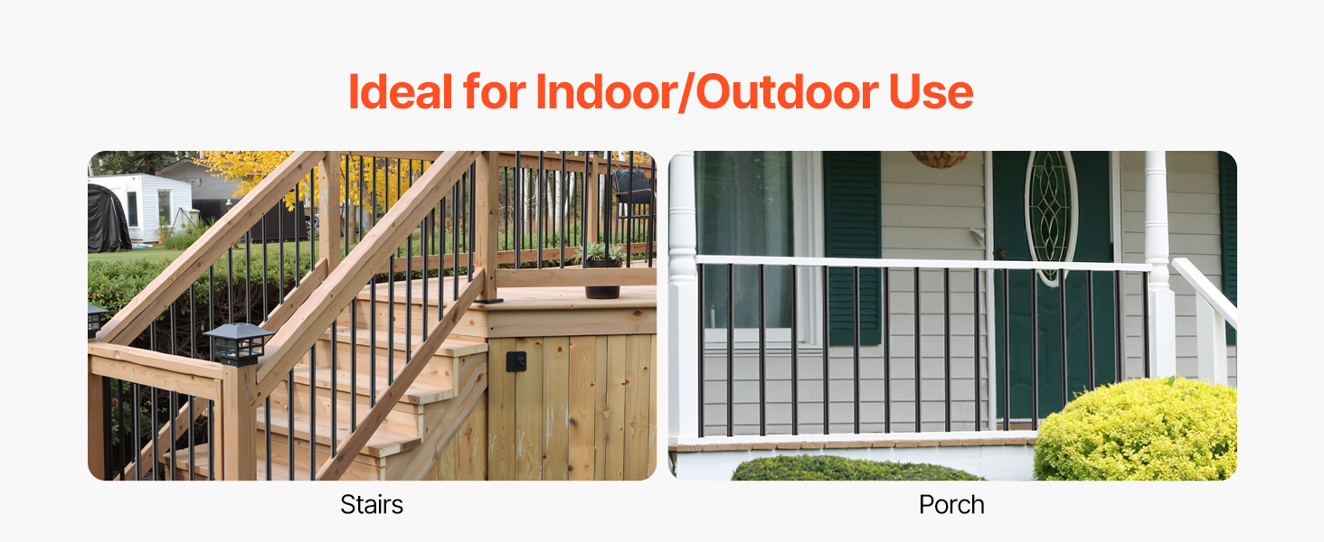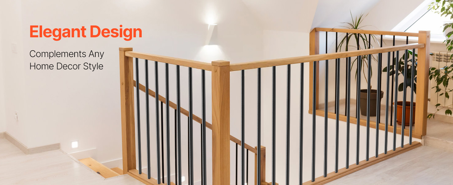 VEVOR 51 шт. 91 см алюмінієві балясини для сходів, 19 мм круглі порожнисті стрижні з ковпачками та гвинтами, чорні, водостійкі