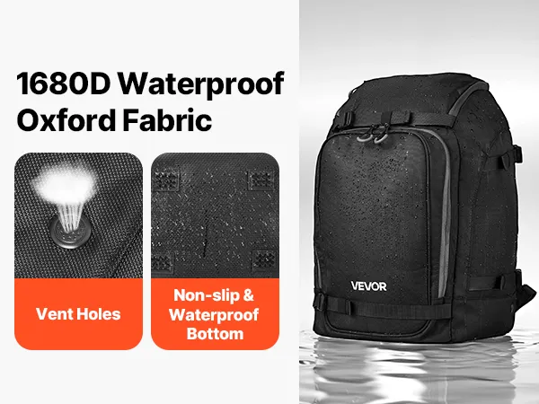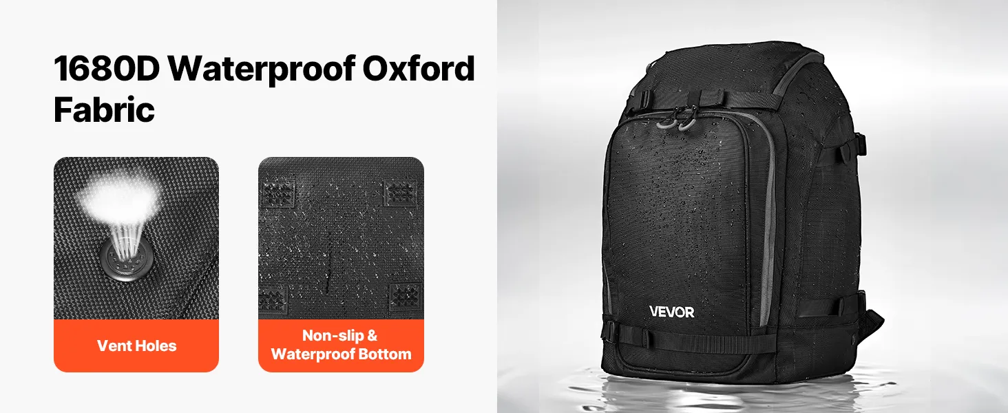 Made of high-strength 1680D waterproof Oxford fabric with a waterproof lining and bottom, this snowboard boot bag effectively blocks snow and rain to keep your gear dry, protected from dampness and corrosion. Ventilation holes at the bottom ensure airflow and avoid odors.
