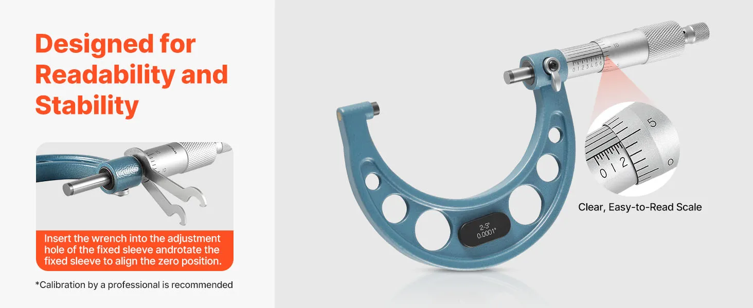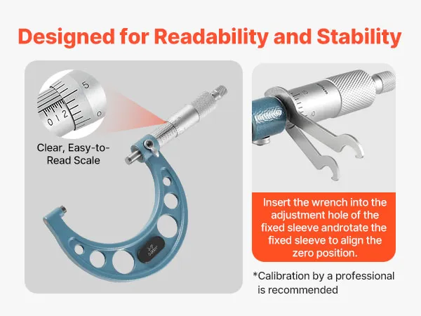 This micrometer features a mechanical design that requires no batteries, allowing accurate measurements in any condition. The clear scale is easy to read, and the included calibration rod helps maintain long-term measuring accuracy.