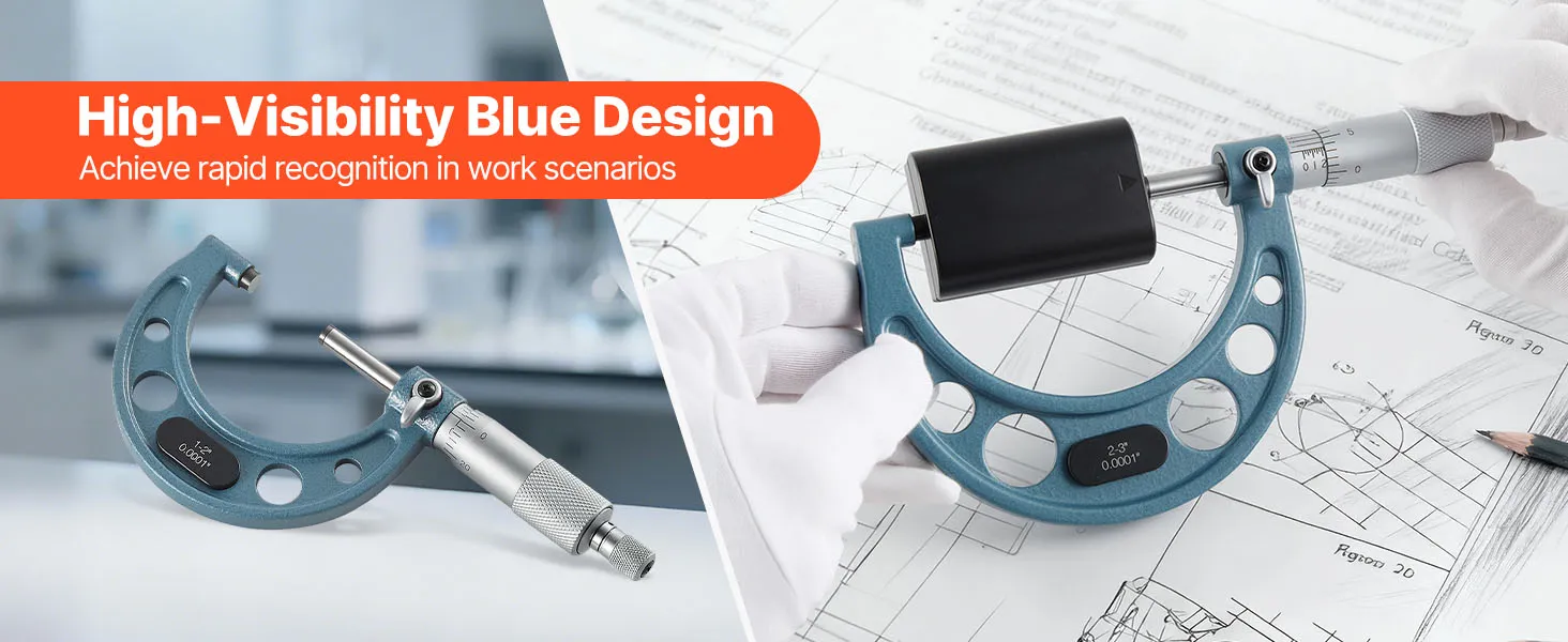 Built with metal, this micrometer set features a blue finish that enhances both appearance and visibility in the workspace, helping you quickly identify the tool, improve efficiency, and extend its service life.