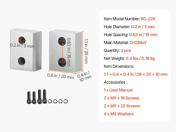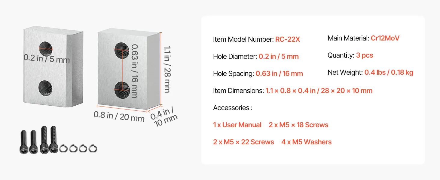 VEVOR 6 змінних леза для щелеп 22 мм для різання арматури, двосторонні, сталь Cr12MoV, з гвинтами та шайбами