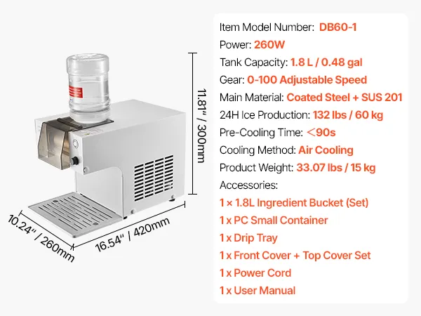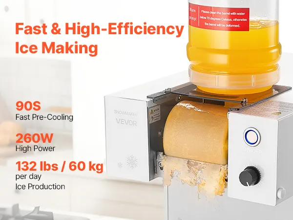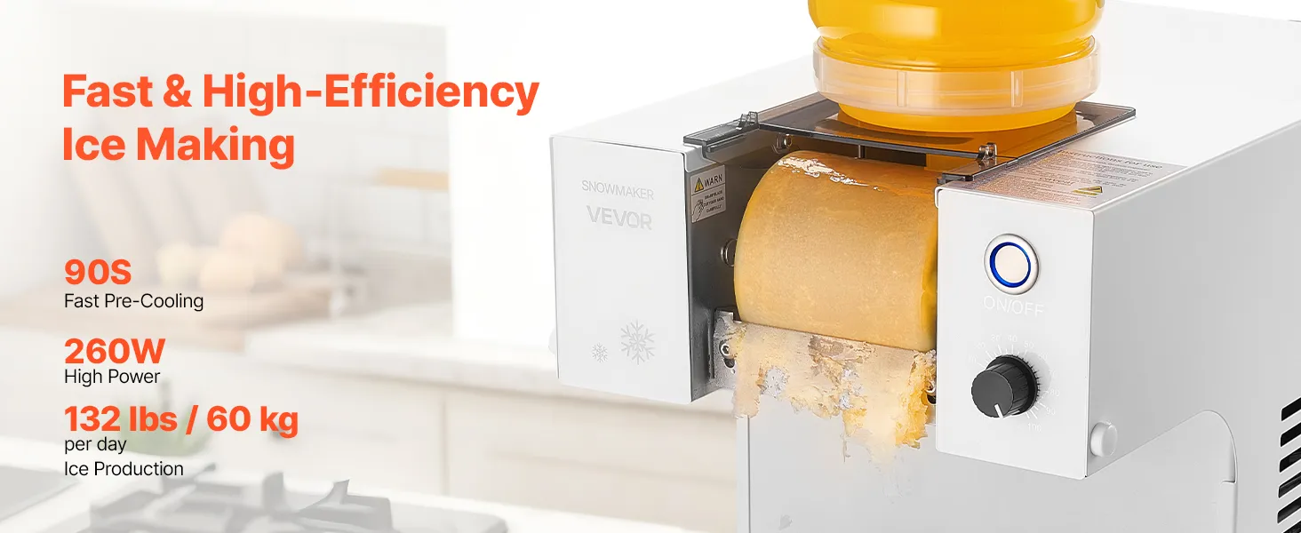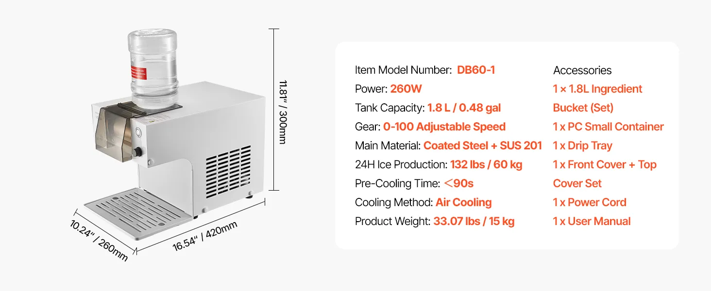VEVOR Snowflake Ice Machine, 60KG/24H Snowflake Ice Maker, Ice-Shaver Machine with Stainless Steel Blade, Electric Snow Cone Maker with 1.8L Tank, 90S Fast Pre-Cooling, for Home & Small Gatherings
