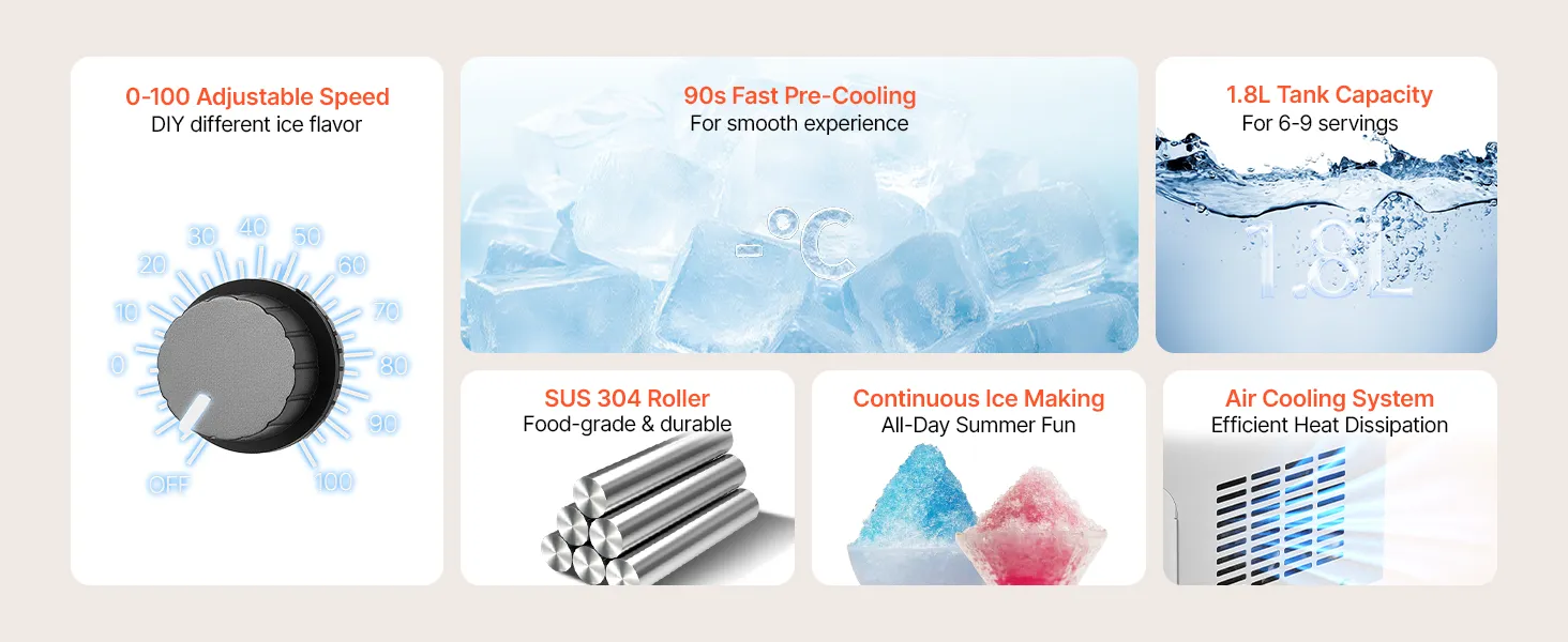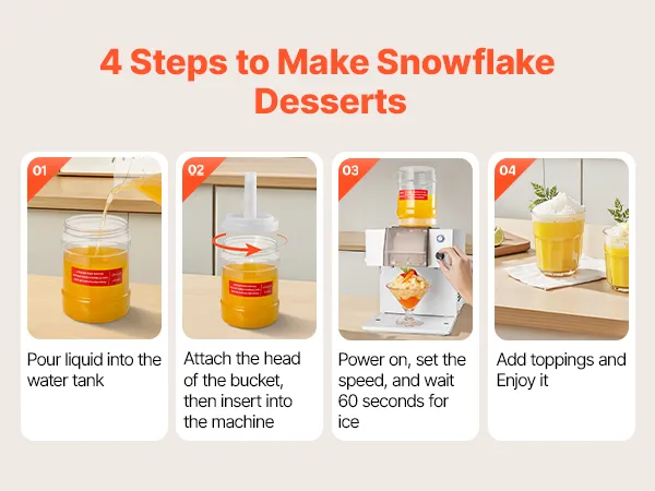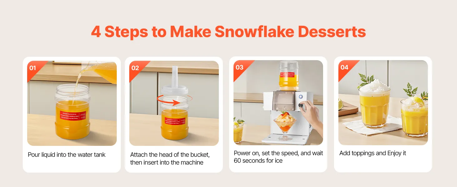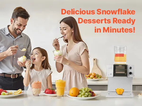This snowflake ice maker allows you to easily create smooth, fluffy ice desserts and drinks at home using water, milk, juice, soda, etc, making it ideal for family use, small gatherings, or entertaining friends, while its compact and user-friendly design ensures fun and convenient preparation of refreshing treats.