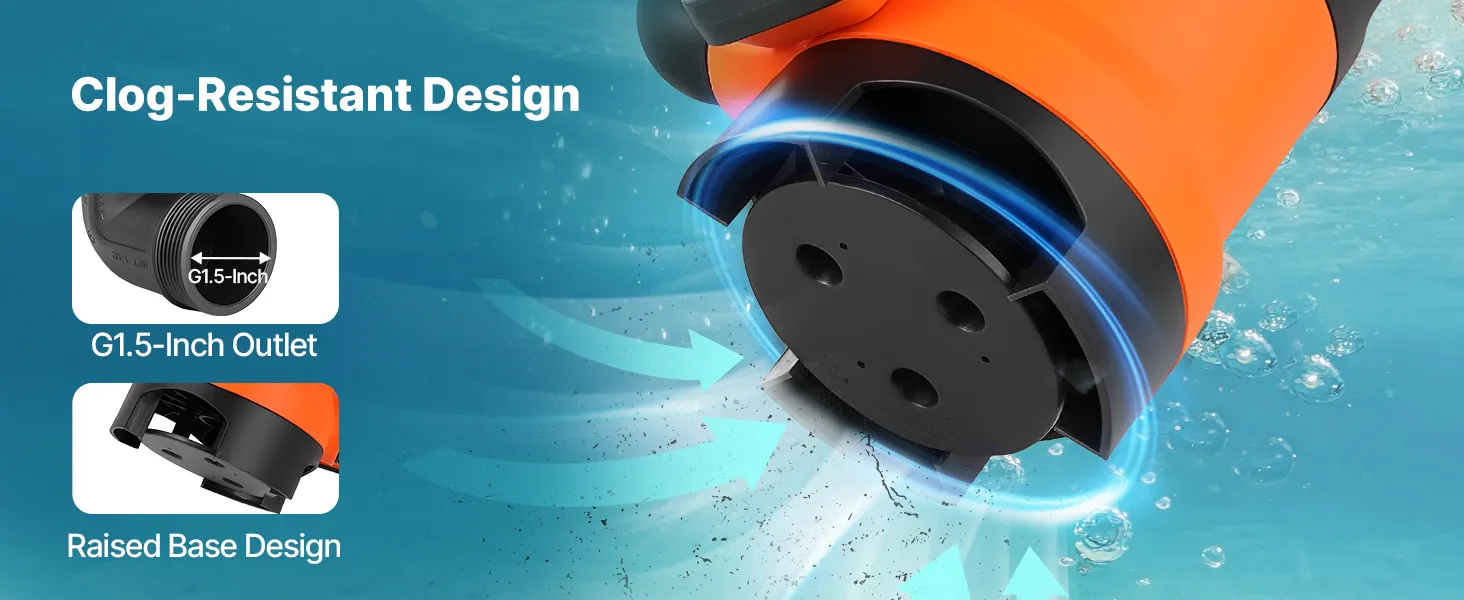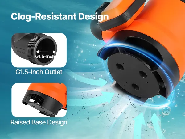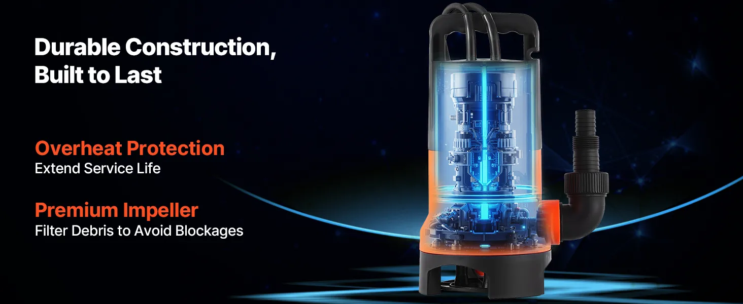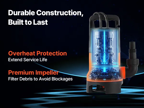 Features a premium impeller that filters out debris to avoid clogging for smooth operation. The built-in overheat protection system safeguards the motor, extending the dirty water submersible sump pump’s service life.