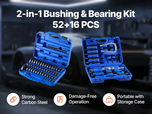 Bearing and seal driver kit includes disc sleeves in multiple sizes and a complete assembly tool in the box. Our bearing press kit allows you to quickly and securely assemble and meet your bearing removal needs.