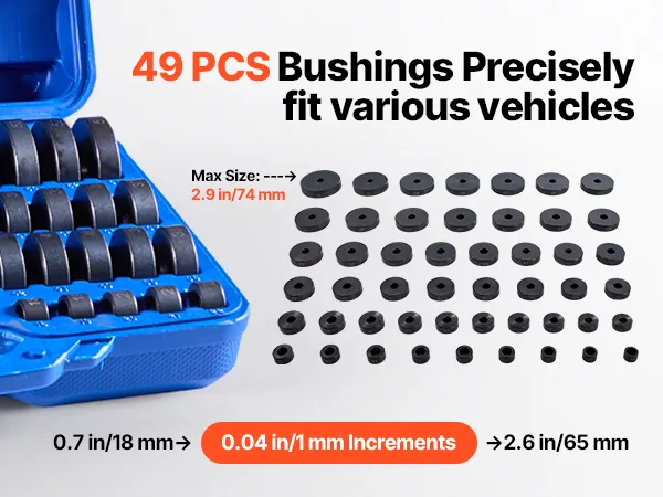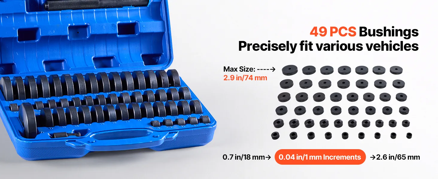 Covers a comprehensive range of the most commonly used disc sleeve sizes. This bushing driver set lets you accurately select the right fit for small bearings in bicycles, motorcycles, or even car bearings, enabling quick disassembly.