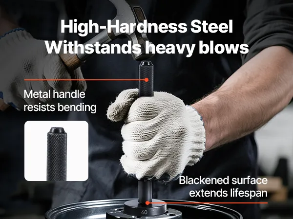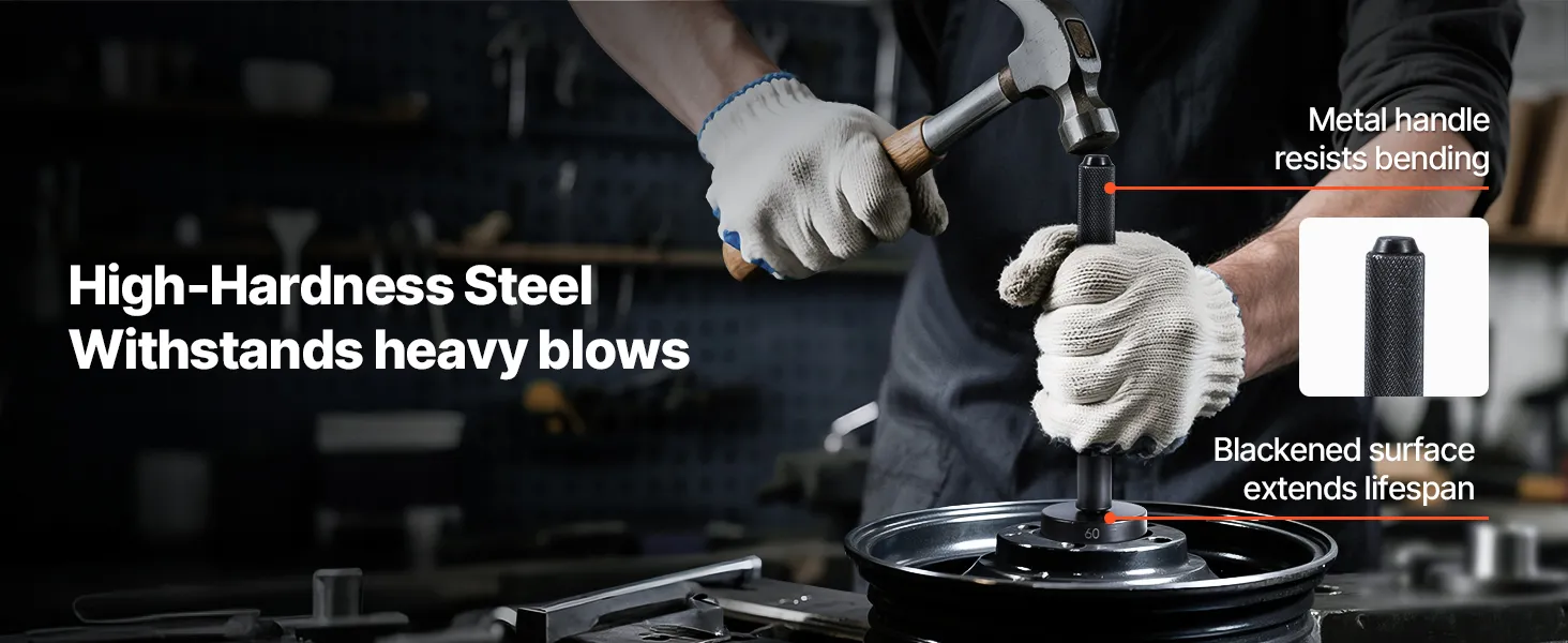 Crafted from sturdy metal with a rust-resistant blackened surface, this bearing seal driver kit delivers long-lasting performance. The extended and thickened handle provides a better grip for effective bearing disassembly.