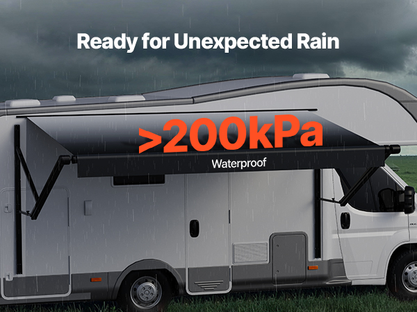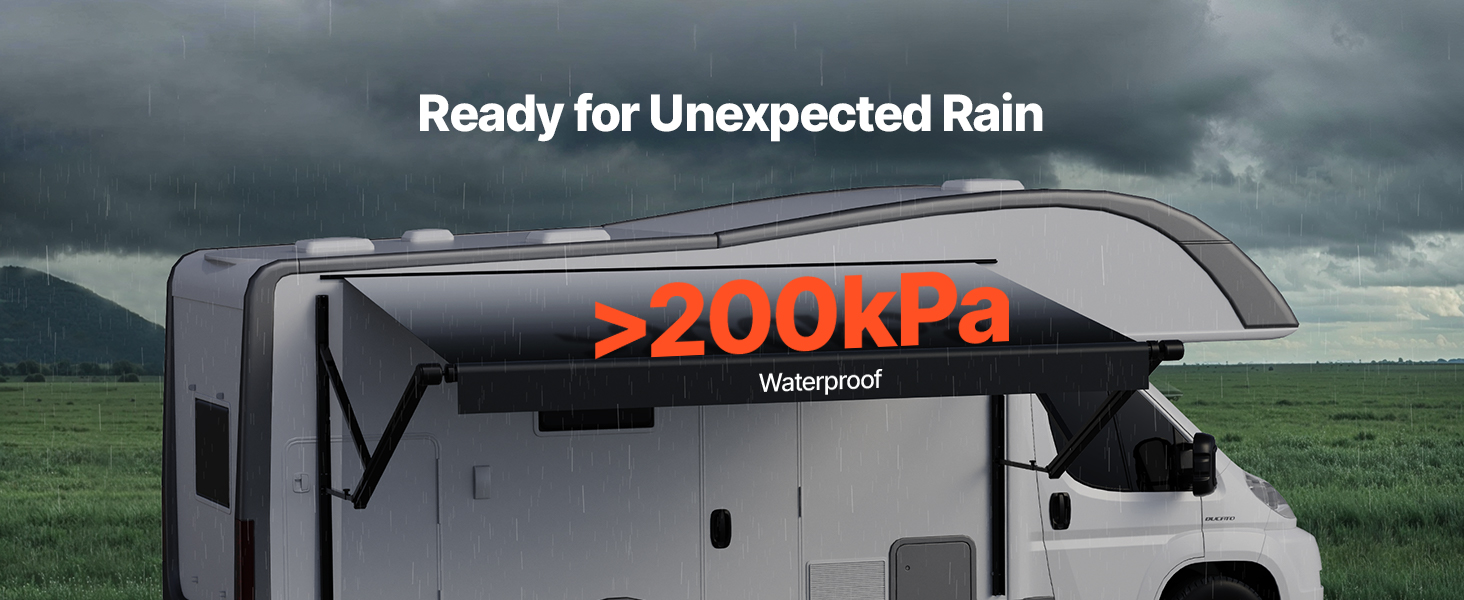 We offer a durable RV awning with upgraded 18oz 4-layer PVC vinyl fabric, designed to withstand changing weather. The reinforced aluminum alloy frame is waterproof, corrosion-resistant, and ensures long-lasting stability and durability.